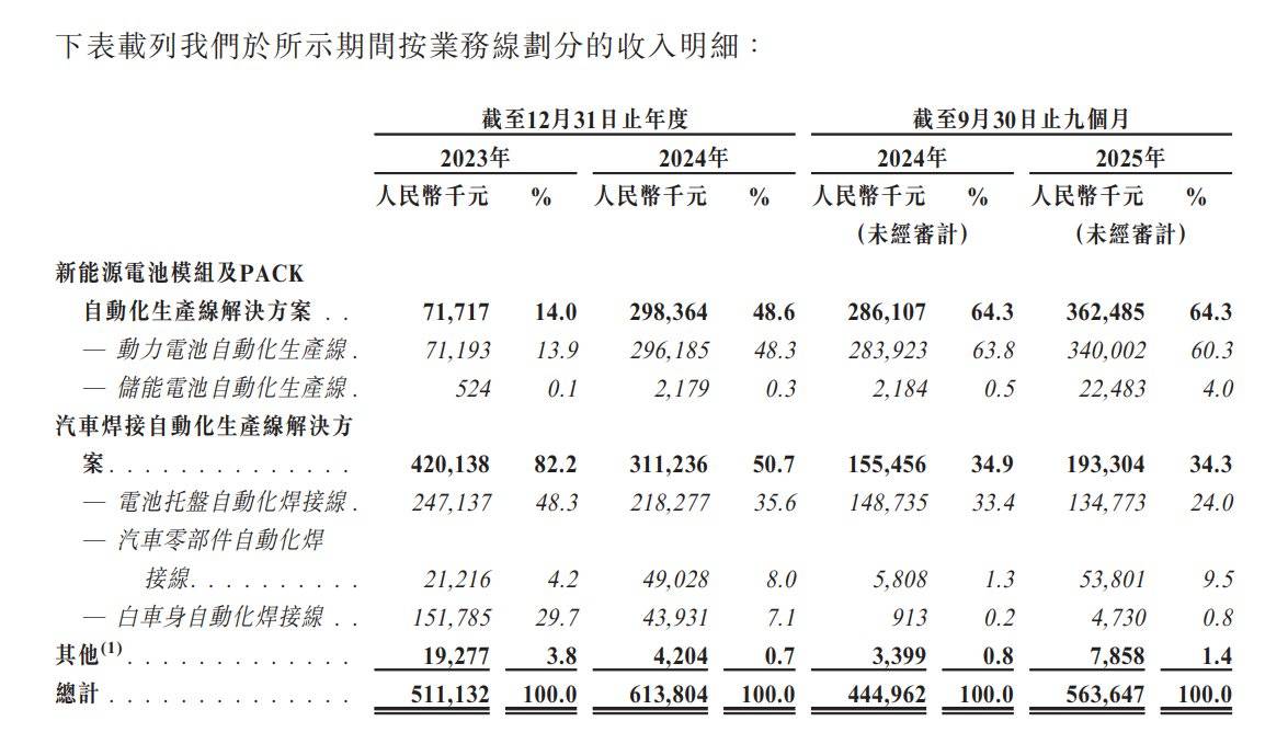 在此基础之上,上海君屹将业务扩展至新能源电池模块及PACK自动化生产线解决方案,以满足电池制造商对高度自动化的中后段组装解决方案日益增长的需求,从而确保大规模生产下的质量一致性、可追溯性及生产效率。且上海君屹近期已将新能源电池模块及PACK自动化生产线解决方案扩展至为储能电池制造商提供服务,并在2025年前三季度开始从储能电池生产线录得规模化收入。